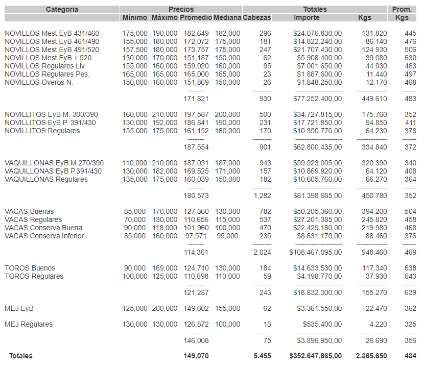 GanaderíaCierre mercado de hacienda el 10 de agosto de 2021 10 de agosto de 2021FacebookTwitterWhatsAppTelegramEmailImpresión PRECIOS DEFINITIVOS POR CATEGORIA EN EL MERCADO DE LINIERS PARA EL MARTES 10/08/2021MÁS INFO PARA TU CAMPO ENTRÁ AQUí