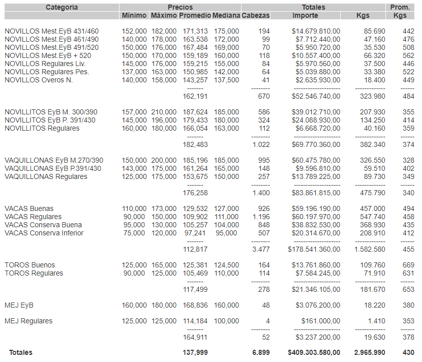 PRECIOS DEFINITIVOS POR CATEGORIA EN EL MERCADO DE LINIERS EL MIÉRCOLES 18/08/2021
