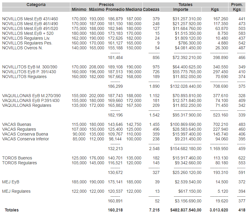 PRECIOS DEFINITIVOS POR CATEGORIA EN EL MERCADO DE LINIERS PARA EL MARTES 21/09/2021