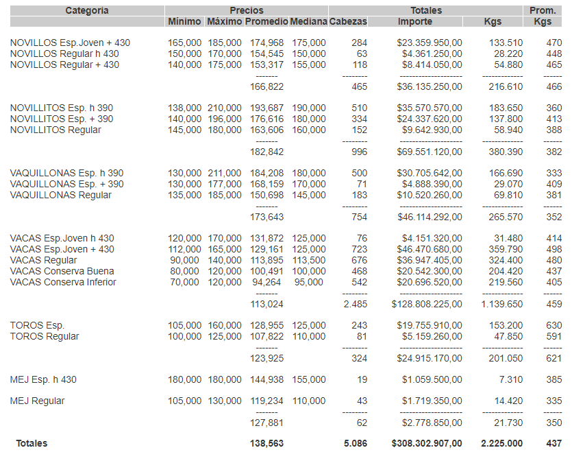 GanaderíaCierre mercado de hacienda el 27 de julio de 2021 27 de julio de 2021FacebookTwitterWhatsAppTelegramEmailImpresión PRECIOS DEFINITIVOS POR CATEGORIA EN EL MERCADO DE LINIERS PARA EL MARTES 27/07/2021 MÁS INFO PARA TU CAMPO ENTRÁ AQUÍ