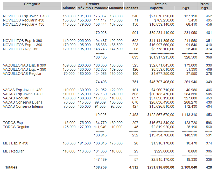 GanaderíaCierre mercado de hacienda el 28 de julio de 2021 28 de julio de 2021FacebookTwitterWhatsAppTelegramEmailImpresión PRECIOS DEFINITIVOS POR CATEGORIA EN EL MERCADO DE LINIERS EL MIÉRCOLES 28/07/2021Fuente: SMNMÁS INFO PARA TU CAMPO ENTRÁ AQUí