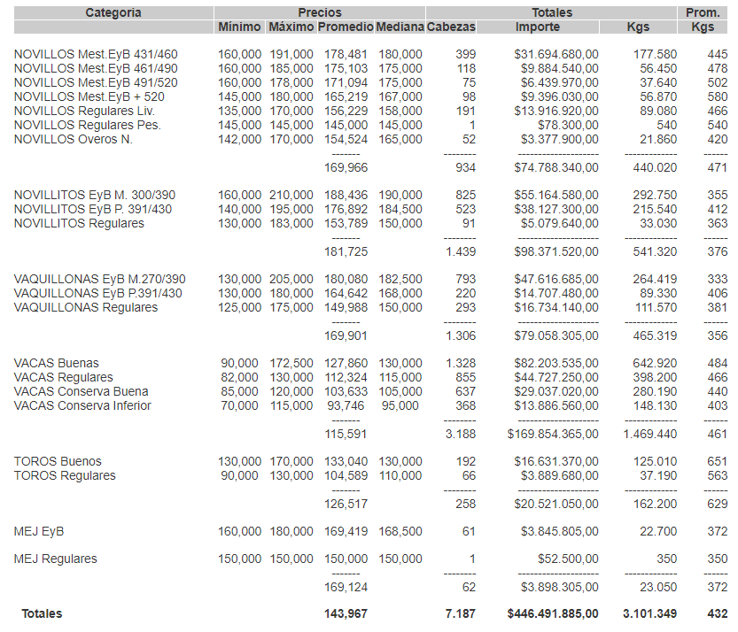 GanaderíaCierre mercado de hacienda el 4 de agosto de 2021 4 de agosto de 2021FacebookTwitterWhatsAppTelegramEmailImpresión PRECIOS DEFINITIVOS POR CATEGORIA PARA EL MIÉRCOLES 04/08/2021MERCADO DE LINIERSMÁS INFO PARA TU CAMPO ENTRÁ AQUí