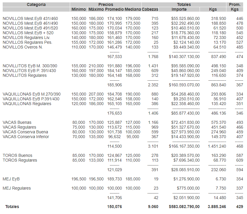 GanaderíaCierre mercado de hacienda el 6 de agosto de 2021 6 de agosto de 2021FacebookTwitterWhatsAppTelegramEmailImpresión PRECIOS DEFINITIVOS POR CATEGORIA PARA EL VIERNES 06/08/2021MERCADO DE LINIERSMÁS INFO PARA TU CAMPO ENTRÁ AQUí