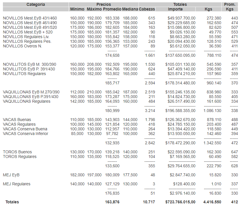 PRECIOS POR CATEGORIA DESDE EL MIÉRCOLES 06/10/2021 AL MIÉRCOLES 06/10/2021