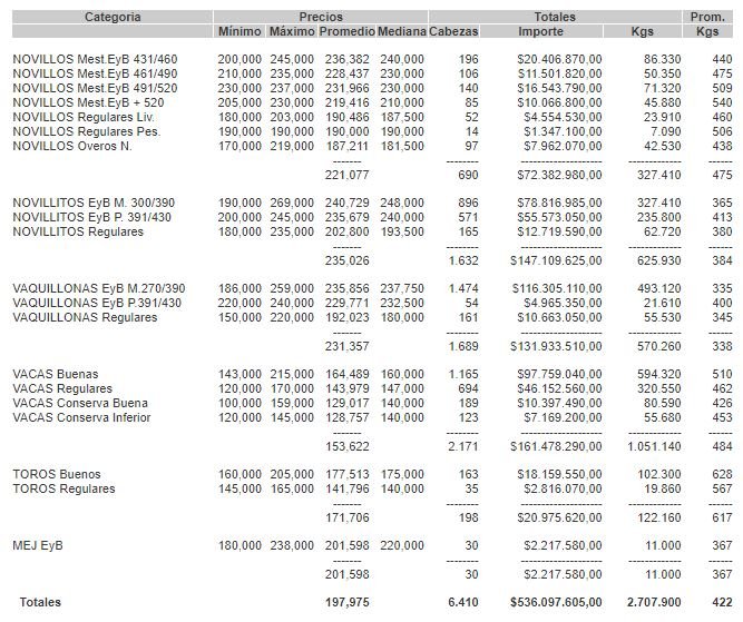 PRECIOS DEFINITIVOS POR CATEGORIA PARA EL MARTES 07/12/2021