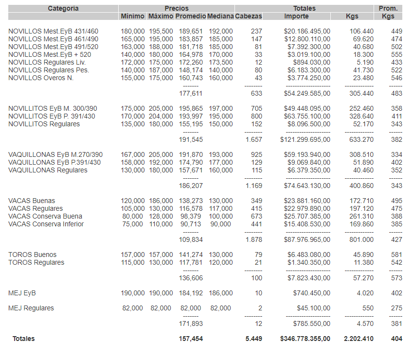 MercadosCierre Mercado de Hacienda para el día 23/04/2021 23 de abril de 2021FacebookTwitterWhatsAppTelegramEmailImpresión PRECIOS DEFINITIVOS POR CATEGORIA PARA EL VIERNES 23/04/2021MERCADO DE LINIERSFuente: SMNMÁS INFORMACIÓN AGROPECUARIA CLIQUEÁ AQUí