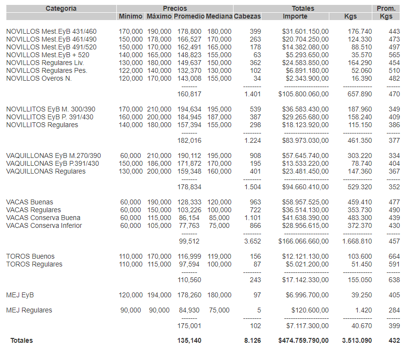 GanaderíaCierre mercado de hacienda 7 de julio de 2021FacebookTwitterWhatsAppTelegramEmailImpresión PRECIOS DEFINITIVOS POR CATEGORIA EN EL MERCADO DE LINIERS PARA EL MIÉRCOLES 07/07/2021MÁS INFO para tu campo entrá AQUÍ