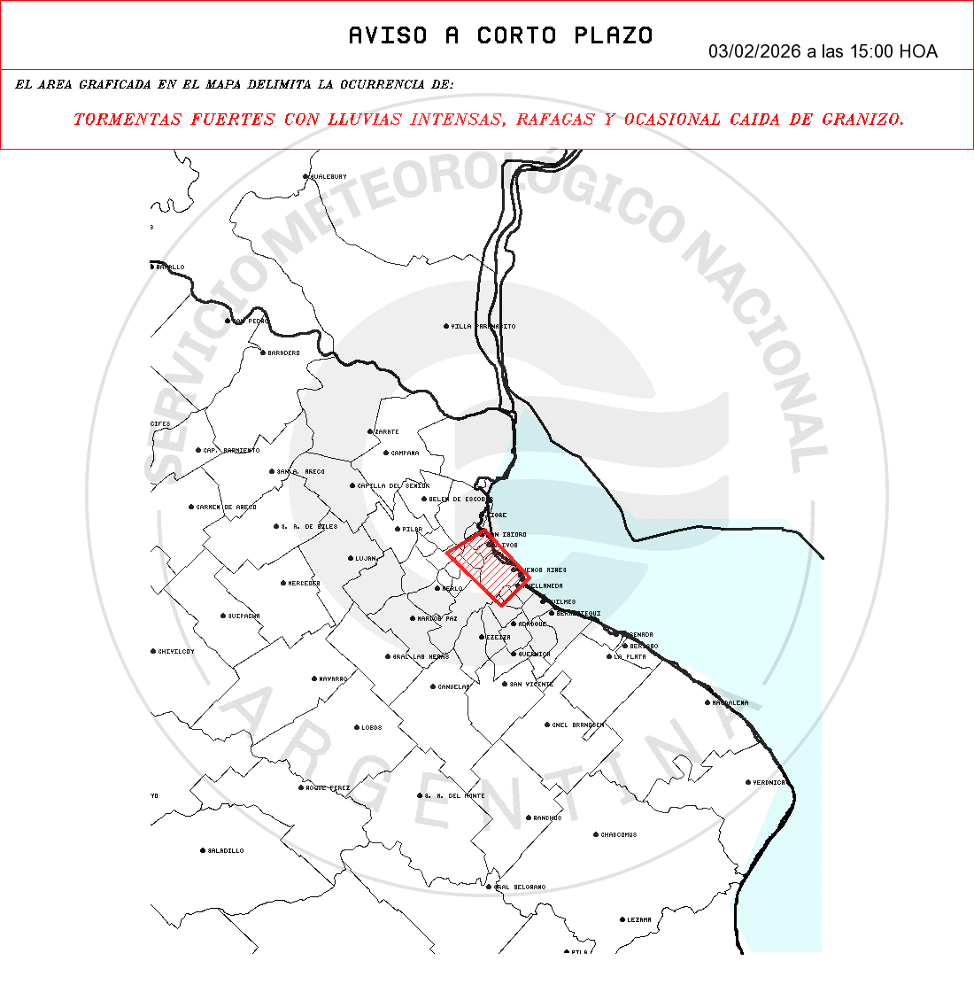 - Medidas de protección: 1- Retirá o asegurá objetos que puedan ser arrojados por el viento. 2- Cerrá y alejate de puertas y ventanas. 3- No te refugies debajo de marquesinas, carteles publicitarios, árboles o postes 4- Permanecé en construcciones cerradas como casas, escuelas o edificios públicos. 5- Desconectá los electrodomésticos y cortá el suministro eléctrico si ingresa agua. 6- Alejate de zonas inundables y no ingreses en calles anegadas. 7- Mantenete alejado de artefactos eléctricos y evitá el uso de teléfonos con cable. 8- Si estás al aire libre, buscá refugio inmediato en un edificio, casa o vehículo cerrado. 9- Para minimizar el riesgo de ser alcanzado por un rayo, no permanezcas en playas, ríos, lagunas o piletas.Los fenómenos indicados en el ACP fueron detectados con radares meteorológicos.