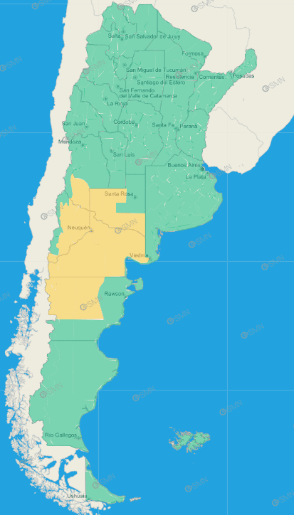 Neuquén: Los Lagos – Catán Lil – Collón Curá – Zapala – Zona baja de Aluminé – Zona baja de Huiliches – Zona baja de Lácar – Confluencia – Este de Añelo – Este de Pehuenches – Picún Leufú – Este de Loncopué – Este de Picunches – Este de Ñorquín – Oeste de Añelo – Oeste de Pehuenches – Sur de Chos Malal – Sur de Minas
