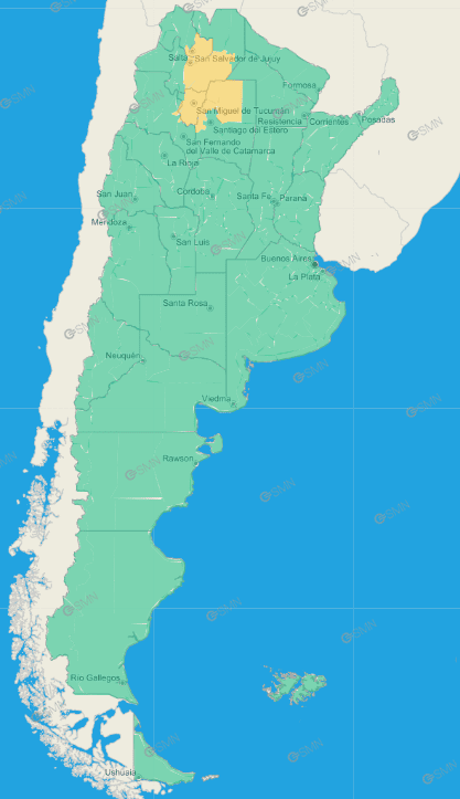 Tucumán: Zona montañosa de Santa María – Zona montañosa de Chicligasta – Zona montañosa de Juan Bautista Alberdi – Zona montañosa de Lules – Zona montañosa de Monteros – Zona montañosa de Río Chico – Zona montañosa de Tafí Viejo – Zona montañosa de Tafí del Valle – Burruyacú – Capital – Cruz Alta – Famaillá – Graneros – La Cocha – Leales – Simoca – Trancas – Yerba Buena – Zonas bajas de Chicligasta – Zonas bajas de Juan Bautista Alberdi – Zonas bajas de Lules – Zonas bajas de Monteros – Zonas bajas de Río Chico – Zonas bajas de Tafí Viejo -Valles de Tafí del Valle