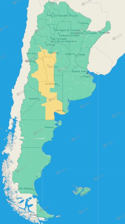 Mendoza: General Alvear – Zona baja de San Rafael – Este de Las Heras – La Paz – Lavalle – San Martín – Santa Rosa