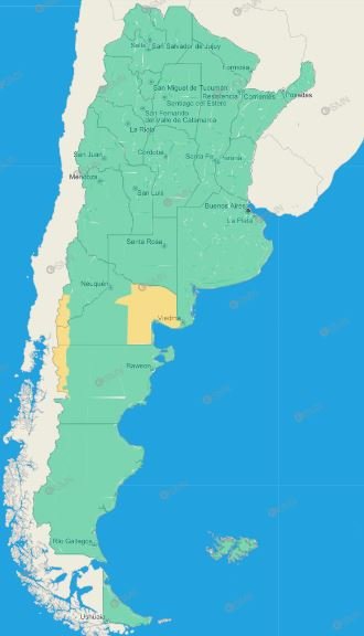 Río Negro: Avellaneda – Pichi Mahuida – Conesa – Meseta de Adolfo Alsina – Meseta de San Antonio – Valcheta – Bariloche – Cordillera de Pilcaniyeu – Cordillera de Ñorquincó