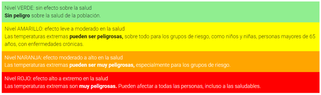 ¿Cuáles son los niveles de alerta y qué efectos tienen sobre la salud?