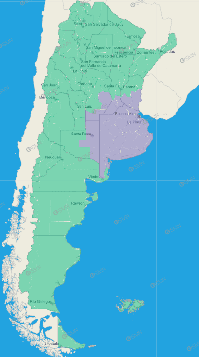 Buenos Aires: General San Martín – Hurlingham – Ituzaingó – Jose C. Paz – Malvinas Argentinas – Moreno – Morón – Pilar – San Miguel – Tres de Febrero – Escobar – San Fernando – San Isidro – Tigre – Vicente López – Campana – Exaltación de la Cruz – San Antonio de Areco – Zárate – General Las Heras – General Rodríguez – Luján – Marcos Paz – Mercedes – San Andrés de Giles – Suipacha – Esteban Echeverría – Ezeiza – La Matanza – Merlo – Almirante Brown – Avellaneda – Berazategui – Florencio Varela – Lanús – Lomas de Zamora – Presidente Perón – Quilmes – Brandsen – Cañuelas – Oeste de Magdalena – San Vicente – Berisso – Ensenada – La Plata – Baradero – Ramallo – San Nicolás – San Pedro – Arrecifes – Capitán Sarmiento – Carmen de Areco – Chacabuco – Colón – General Arenales – General Pinto – Junín – Leandro N. Alem – Lincoln – Pergamino – Rojas – Salto – Florentino Ameghino – General Villegas – Rivadavia – Alberti – Bragado – Chivilcoy – General Viamonte – Nueve de Julio – Veinticinco de Mayo – Adolfo Alsina – Daireaux – Guaminí – Pellegrini – Salliqueló – Trenque Lauquen – Tres Lomas – Costa de Bahía Blanca – Costa de Coronel Dorrego – Costa de Coronel de Marina Leonardo Rosales – Costa de Villarino – Monte Hermoso – Norte de Bahía Blanca – Oeste de Patagones – Oeste de Villarino – Puan – Zona baja de Coronel Pringles – Zona baja de Coronel Suárez – Zona baja de Saavedra – Zona baja de Tornquist – Adolfo Gonzales Chaves – Centro de Lobería – Norte de Coronel Dorrego – Norte de Necochea – Norte de San Cayetano – Norte de Tres Arroyos – Costa de Lobería – Costa de Necochea – Costa de San Cayetano – Costa de Tres Arroyos – General La Madrid – Laprida – Olavarría – Costa de General Pueyrredón – Costa de Mar Chiquita – General Alvarado – Este de General Lavalle – La Costa – Este de Castelli – Este de Chascomús – Este de Dolores – Este de Lezama – Este de Magdalena – Este de Punta Indio – Este de Tordillo – Oeste de Castelli – Oeste de Chascomús – Oeste de Dolores – Oeste de General Lavalle – Oeste de Lezama – Oeste de Punta Indio – Oeste de Tordillo – Pila – Ayacucho – Balcarce – General Guido – Maipú – Noroeste de General Juan Madariaga – Noroeste de Mar Chiquita – Oeste de General Pueyrredón – General La Madrid – Laprida – Olavarría – Azul – Rauch – Tapalqué – Zona baja de Benito Juárez – Zona baja de Tandil – General Alvear – General Belgrano – General Paz – Las Flores – Lobos – Monte – Navarro – Roque Pérez – Saladillo