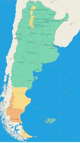Tucumán: Burruyacú – Capital – Cruz Alta – Famaillá – Graneros – La Cocha – Leales – Simoca – Trancas – Yerba Buena – Zonas bajas de Chicligasta – Zonas bajas de Juan Bautista Alberdi – Zonas bajas de Lules – Zonas bajas de Monteros – Zonas bajas de Río Chico – Zonas bajas de Tafí Viejo