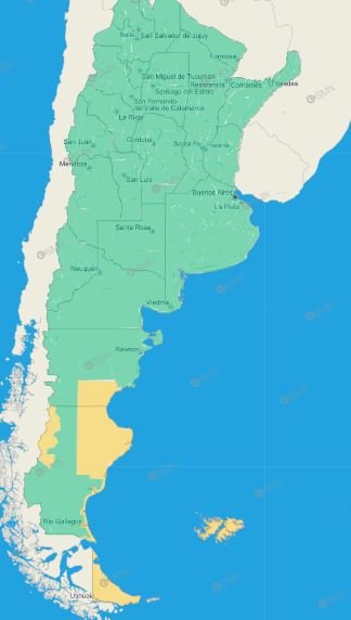 Santa Cruz: Costa de Deseado -vMeseta de Deseado – Meseta de Magallanes – Costa de Corpen Aike – Costa de Güer Aike – Zona no costera Río Grande – Zona no costera de Ushuaia