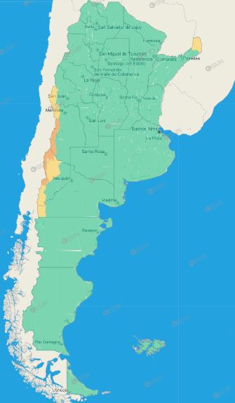 Neuquén: Este de Loncopué – Este de Picunches – Este de Ñorquín – Oeste de Añelo – Oeste de Pehuenches – Sur de Chos Malal – Sur de Minas