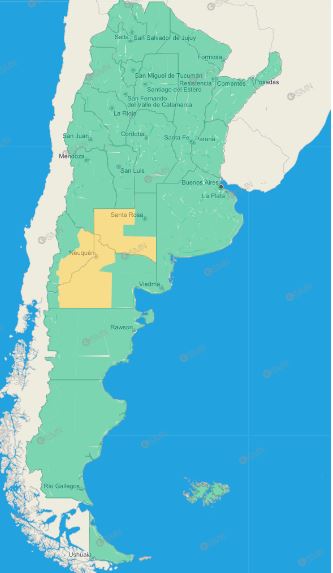 Neuquén: Confluencia – Este de Añelo – Este de Pehuenches – Picún Leufú – Catán Lil – Collón Curá – Zapala – Zona baja de Aluminé – Zona baja de Huiliches – Zona baja de Lácar