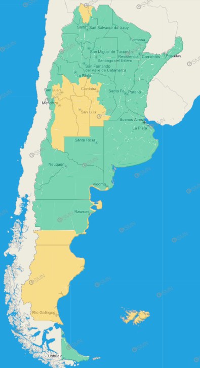 Córdoba: General Roca – Presidente Roque Sáenz Peña – Juárez Celman – Zona baja de Río Cuarto – Zona baja de Calamuchita – Zona baja de Santa María – Zona serrana de Calamuchita – Zona serrana de Río Cuarto – Punilla – Zona serrana de Colón – Zona serrana de Ischilín – Zona serrana de Santa María – Zona serrana de Totoral – Zona serrana de Cruz del Eje – Zona serrana de Minas – Zona serrana de Pocho – Zona serrana de San Alberto – Zona serrana de San Javier – Oeste de Pocho – Oeste de San Alberto – Oeste de San Javier – Zona baja de Colón – Zona baja de Totoral – Zona baja de Cruz del Eje – Zona baja de Minas