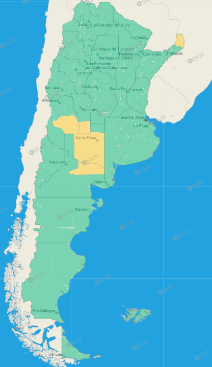 La Pampa: Atreucó – Capital – Catriló – Conhelo – Guatraché – Quemú Quemú – Toay – Utracán – Caleu Caleu – Hucal – Curacó – Lihuel Calel – Chalileo – Limay Mahuida – Loventué