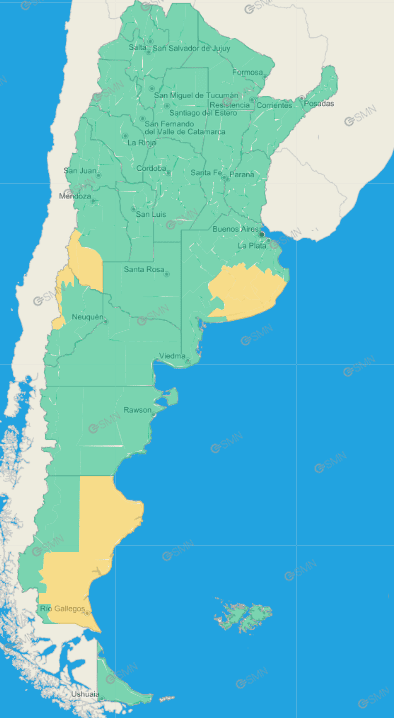 Buenos Aires: Ayacucho – Balcarce – General Guido – Maipú – Noroeste de General Juan Madariaga – Noroeste de Mar Chiquita – Oeste de General Pueyrredón – Costa de General Pueyrredón – Costa de Mar Chiquita – General Alvarado – Azul – Rauch – Tapalqué – Zona baja de Benito Juárez – Zona baja de Tandil – General La Madrid – Laprida – Olavarría – Adolfo Gonzales Chaves – Centro de Lobería – Norte de Coronel Dorrego – Norte de Necochea – Norte de San Cayetano – Norte de Tres Arroyos – Costa de Lobería – Costa de Necochea – Costa de San Cayetano – Costa de Tres Arroyos