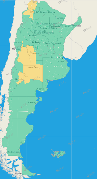 Mendoza: General Alvear – Zona baja de San Rafael – Junín – Rivadavia – Valles de Luján de Cuyo – Valles de San Carlos – Valles de Tunuyán – Valles de Tupungato – Este de Las Heras – La Paz – Lavalle – San Martín – Santa Rosa