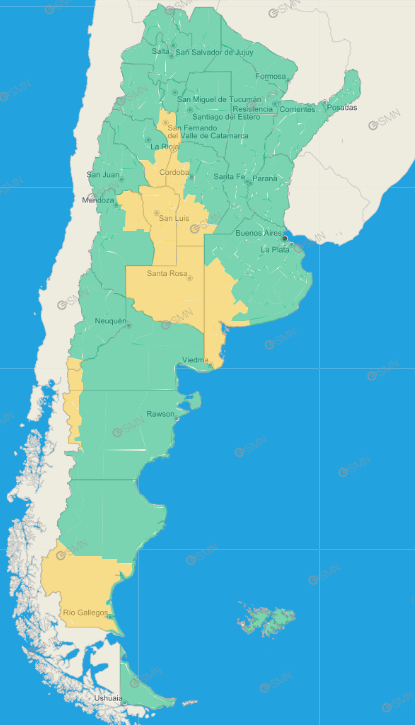 Buenos Aires: Costa de Patagones – Norte de Bahía Blanca – Oeste de Patagones – Oeste de Villarino – Puan – Zona baja de Coronel Pringles – Zona baja de Coronel Suárez – Zona baja de Saavedra – Zona baja de Tornquist – Costa de Bahía Blanca – Costa de Coronel Dorrego – Costa de Coronel de Marina Leonardo Rosales – Costa de Villarino – Monte Hermoso – Adolfo Alsina – Daireaux – Guaminí – Pellegrini – Salliqueló – Trenque Lauquen – Tres Lomas
