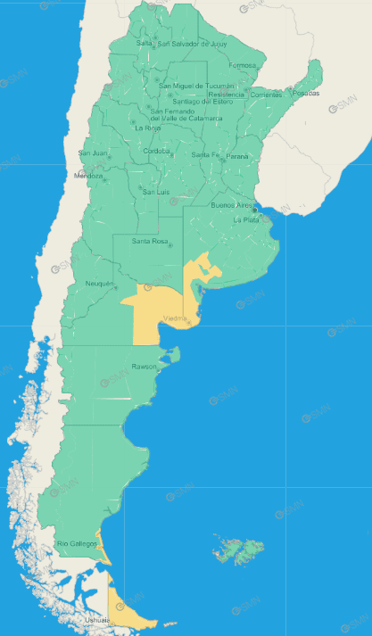 Buenos Aires: Costa de Patagones – Norte de Bahía Blanca – Oeste de Patagones – Oeste de Villarino – Puan – Zona baja de Coronel Pringles – Zona baja de Coronel Suárez – Zona baja de Saavedra – Zona baja de Tornquist
