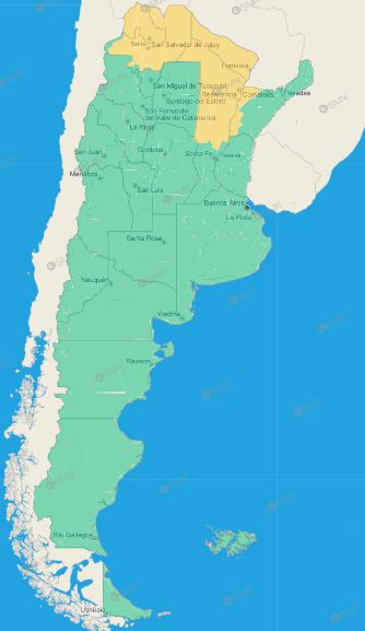 Jujuy: El Carmen – Ledesma – Palpalá – San Antonio – San Pedro – Santa Bárbara – Valle Grande – Zona baja de Doctor Manuel Belgrano – Zona baja de Tilcara – Zona montañosa de Doctor Manuel Belgrano – Zona montañosa de Humahuaca – Zona montañosa de Tilcara – Zona montañosa de Tumbaya – Puna de Cochinoca – Puna de Humahuaca – Puna de Rinconada – Puna de Santa Catalina – Puna de Tilcara – Puna de Tumbaya – Yavi – Cordillera de Cochinoca – Cordillera de Rinconada – Cordillera de Santa Catalina – Cordillera de Susques – Puna de Susques