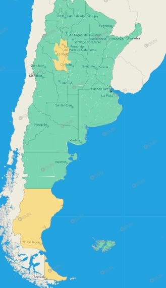 Tierra del fuego: Costa de Ushuaia – Zona no costera Río Grande – Zona no costera de Ushuaia – Costa de Río Grande