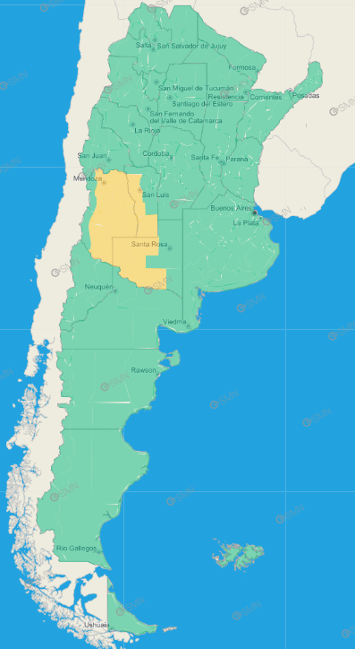 Mendoza: Zona baja de Malargüe – General Alvear – Zona baja de San Rafael – Junín – Rivadavia – Valles de Luján de Cuyo – Valles de San Carlos – Valles de Tunuyán – Valles de Tupungato – Este de Las Heras – La Paz – Lavalle – San Martín – Santa Rosa