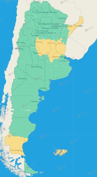 Córdoba: General San Martín – Marcos Juárez – Unión – San Justo – Río Primero – Río Segundo – Tercero Arriba – Juárez Celman – Zona baja de Río Cuarto – Zona baja de Calamuchita – Zona baja de Santa María – Punilla – Zona serrana de Colón – Zona serrana de Ischilín – Zona serrana de Santa María – Zona serrana de Totoral – Zona serrana de Cruz del Eje – Zona serrana de Minas – Zona serrana de Pocho – Zona serrana de San Alberto – Zona serrana de San Javier – Oeste de Pocho – Oeste de San Alberto – Oeste de San Javier – Zona baja de Colón – Zona baja de Totoral