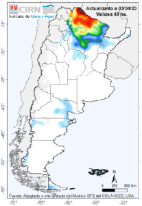 argentino y la reg. Pampeana (norte y sudoeste). Los mayores acumulados se podrían registrar sobre Salta, Formosa y Chaco.