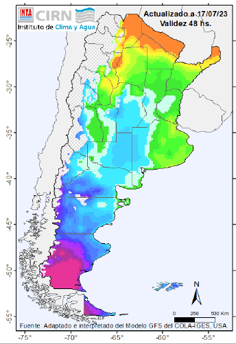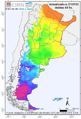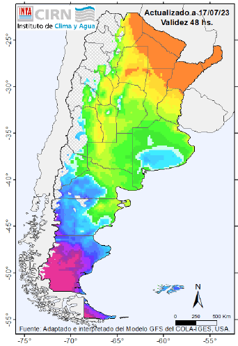 Ingreso de aire frío a partir del lunes 24 Heladas moderadas sobre el centro del país y heladas fuertes sobre la Patagonia.