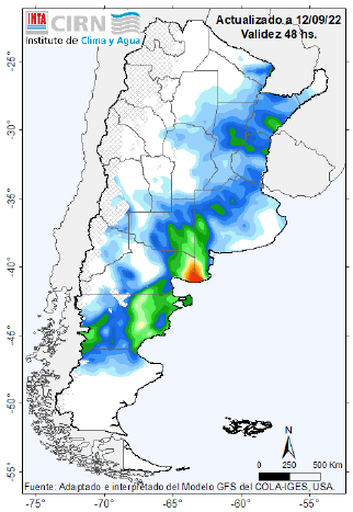 De este modo, se registrarían precipitaciones sobre lo normal para la época en Cuyo (oeste) la reg. Pampeana (sudoeste) Río Negro (este) Chubut y Santa Cruz (oeste y norte).