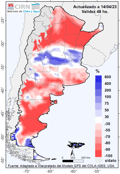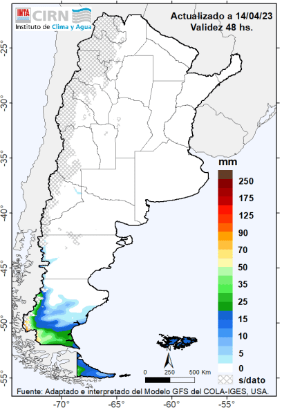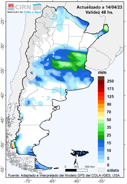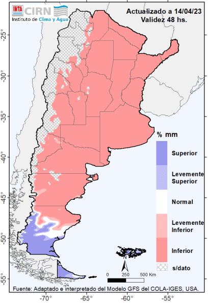 Las precipitaciones pronosticadas serían superiores a las normales para la época sobre Cuyo (sur), reg. Pampeana (centro y norte) y Santa Cruz (oeste y sur).