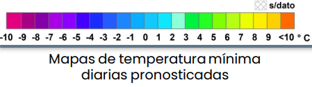 Ambiente frío a templado sobre la mayor parte del país. Podrían registrarse temperaturas mínimas cercanas a los 5° C sobre el centro y áreas del norte argentino.