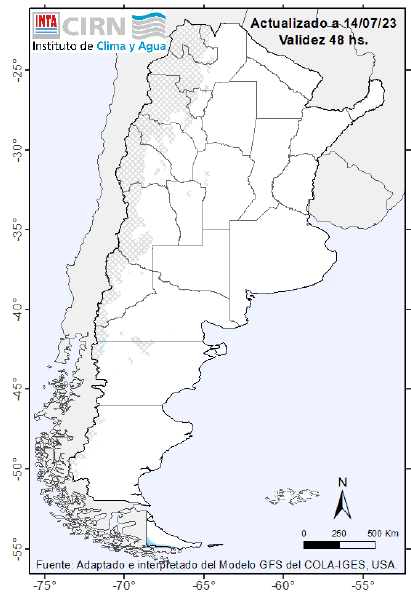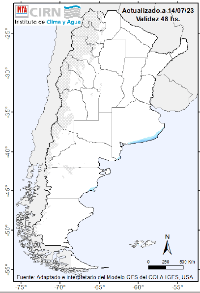 Al día de la fecha, el pronóstico indica lluvias y nevadas de variada intensidad sobre toda