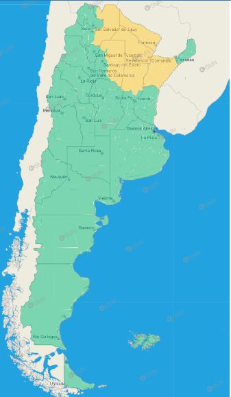 Santiago del Estero: Aguirre – Avellaneda – Belgrano – General Taboada – Juan F. Ibarra – Mitre – Quebrachos – Rivadavia – Salavina – Sarmiento – Este de Alberdi – Este de Copo – Este de Moreno – Figueroa – Oeste de Alberdi – Oeste de Copo – Oeste de Moreno – Pellegrini