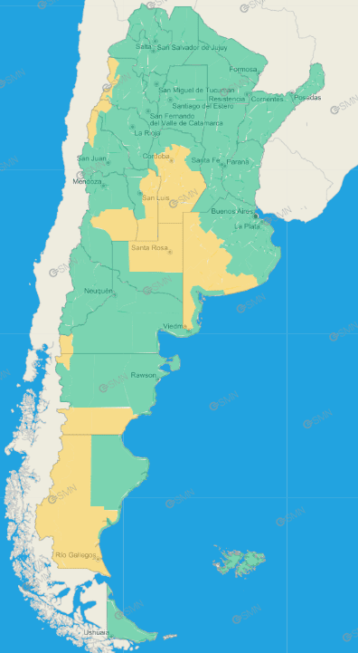 Buenos Aires: Costa de Lobería – Costa de Necochea – Costa de San Cayetano – Costa de Tres Arroyos – Adolfo Gonzales Chaves – Centro de Lobería – Norte de Coronel Dorrego – Norte de Necochea – Norte de San Cayetano – Norte de Tres Arroyos – Norte de Bahía Blanca – Oeste de Patagones – Oeste de Villarino – Puan – Zona baja de Coronel Pringles – Zona baja de Coronel Suárez – Zona baja de Saavedra – Zona baja de Tornquist – General La Madrid – Laprida – Olavarría – Adolfo Alsina – Daireaux – Guaminí – Pellegrini – Salliqueló – Trenque Lauquen – Tres Lomas – Bolívar – Carlos Casares – Carlos Tejedor – Hipólito Yrigoyen – Pehuajó – Florentino Ameghino – General Villegas – Rivadavia