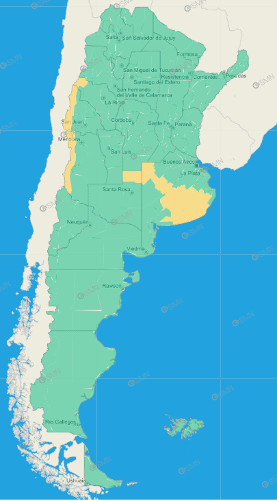 Buenos Aires: Florentino Ameghino – General Villegas – Rivadavia – General La Madrid – Laprida – Olavarría – Bolívar – Carlos Casares – Carlos Tejedor – Hipólito Yrigoyen – Pehuajó – Azul – Rauch – Tapalqué – Zona baja de Benito Juárez – Zona baja de Tandil – Adolfo Gonzales Chaves – Centro de Lobería – Norte de Coronel Dorrego – Norte de Necochea – Norte de San Cayetano – Norte de Tres Arroyos – Ayacucho – Balcarce – General Guido – Maipú – Noroeste de General Juan Madariaga – Noroeste de Mar Chiquita – Oeste de General Pueyrredón – Costa de General Pueyrredón – Costa de Mar Chiquita – General Alvarado – Costa de Lobería – Costa de Necochea – Costa de San Cayetano – Costa de Tres Arroyos –