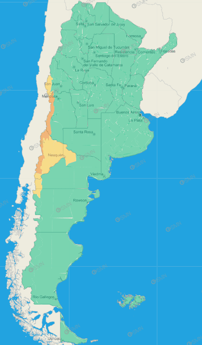 Neuquén: Cordillera de Aluminé – Cordillera de Chos Malal – Cordillera de Loncopué – Cordillera de Minas – Cordillera de Picunches – Cordillera de Ñorquín – Cordillera de Huiliches – Cordillera de Lácar – Sur de Aluminé – Los Lagos – Este de Loncopué – Este de Picunches – Este de Ñorquín – Oeste de Añelo – Oeste de Pehuenches – Sur de Chos Malal – Sur de Minas – Catán Lil – Collón Curá – Zapala – Zona baja de Aluminé – Zona baja de Huiliches – Zona baja de Lácar – Este de Loncopué – Este de Picunches – Este de Ñorquín – Oeste de Añelo – Oeste de Pehuenches – Sur de Chos Malal – Sur de Minas – Confluencia – Este de Añelo – Este de Pehuenches – Picún Leufú