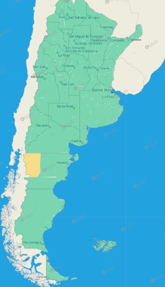 Chubut: Meseta de Cushamen – Meseta de Futaleufú – Meseta de Languiñeo – Meseta de Tehuelches – Cordillera de Cushamen – Cordillera de Futaleufú – Cordillera de Languiñeo – Cordillera de Tehuelches