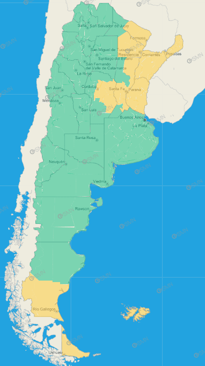 Tierra del Fuego, Antártida e Islas del Atlántico Sur: Costa de Río Grande – Costa de Ushuaia – Zona no costera Río Grande – Zona no costera de Ushuaia