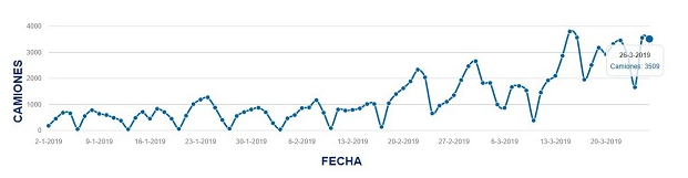 Ingreso de camiones con maíz en lo que va del año. Fuente: Williams Entregas
