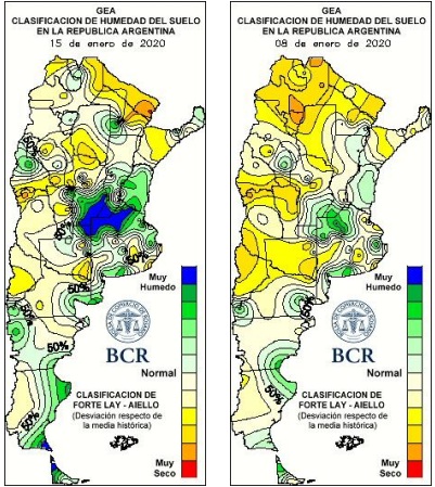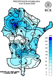 El promedio histórico de las lluvias de enero muestra que en enero suelen llover entre 100 y 150 mm. Pero ya se terminó la primera quincena de enero y en muchos lugares se superan los 150 mm. Es el caso de Bell Ville que ya lleva acumulado 168 mm o Maria Teresa, con 151,2 mm y Lincoln 148 mm. De hecho, promediando las lluvias acumuladas en estos quince días de las 36 estaciones meteorológicas de GEA el resultado da 110 mm. La recuperación hídrica ya es un hecho, y hasta comienzan a visualizarse núcleos de excesos hídricos en la región. Y las lluvias siguen, los pronósticos ya anuncian un nuevo evento para el lunes y martes que viene.