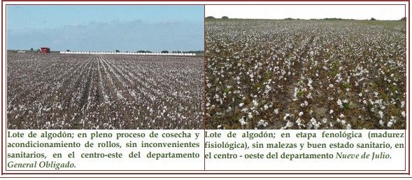 Como consecuencia, la secuencia de días con buen tiempo permitió que las actividades agrícolas se desarrollen normalmente, siendo las más relevantes, la continuación del proceso de cosecha de arroz, maíz temprano, algodón e inicio de trilla en soja temprana y sorgo granífero. También continuó el picado–embolsado del maíz tardío, como reserva para consumo animal.