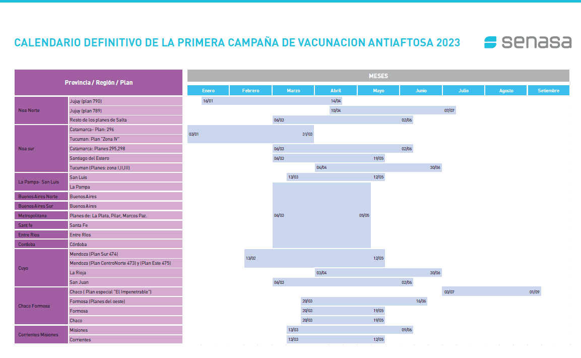El próximo 6 de marzo comienza la primera campaña de vacunación anti aftosa 2023 en las provincias de la zona central del país -salvo zonas puntuales donde se inoculó entre enero y febrero-, y entre el 13 y 20 en las del litoral y el norte. Este año la vacunación tendrá un requisito extra vinculado con la influenza aviar.
