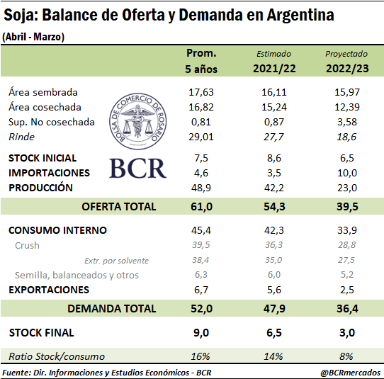 La Guía Estratégica para el Agro de la BCR recortó, en su último informe mensual, su estimación de producción nacional de soja 2022/23 a 23 Mt, lo que deja a la campaña actual en la menor producción en más de 20 años.