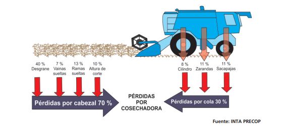Del total de pérdidas provocadas por la cosechadora durante la recolección del cultivo de soja, la investigación ha mostrado que en el promedio de casos, el 70% lo ocasiona el cabezal recolector y a su vez, de esta pérdida, alrededor del 50 % se genera por el movimiento que la barra de corte le imprime a las plantas de soja en el momento de ser cortadas. Este movimiento dentro del cultivo en pie, provoca en las plantas que son cortadas, fricción de las chauchas y consecuentemente desgrane. Cuando el movimiento es excesivo, se transforma en un “batido” de las plantas que incrementa el desgrane y la pérdida de cosecha, especialmente cuando el contenido de humedad de las chauchas es menor al recomendado.